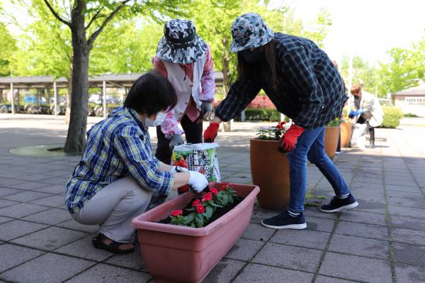 市女性協議会による花植え活動(令和3年5月6日)
