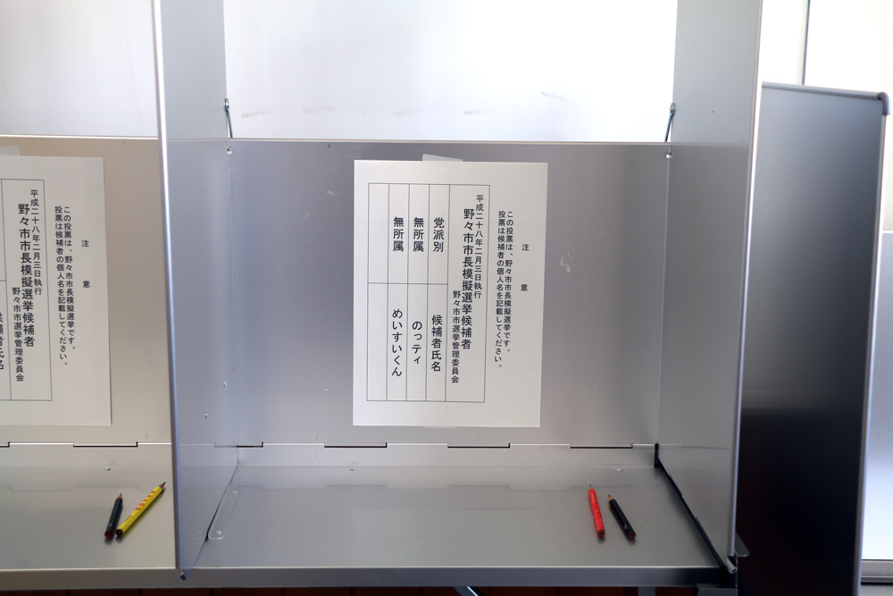 結果は、のっティ候補が18票、めいすいくん候補が16票となり、のっティ候補が見事に野々市市長に当選しました。