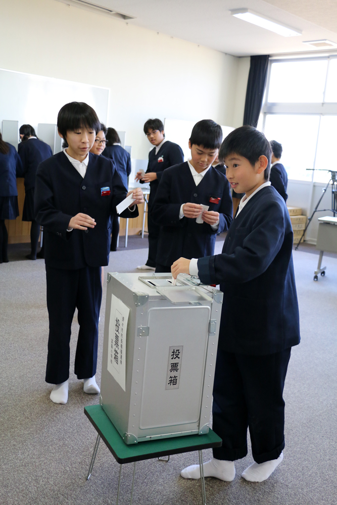 次々と投票箱へ向かう児童ら