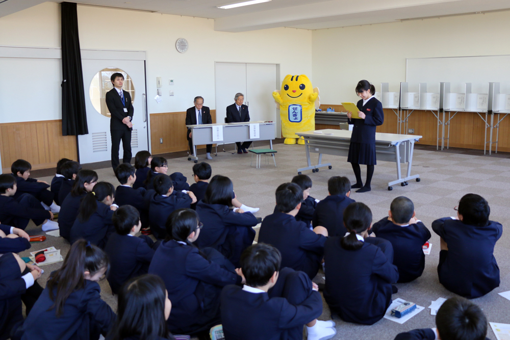 2月3日(水曜日)、富陽小学校で市長選を想定した模擬投票が行われました。夏の参議院選からは選挙権年齢が18歳以上になる見込みであり、若年層の意識啓発を目的に実施。6年生約135人が、実際の選挙さながらに投票を体験しました。