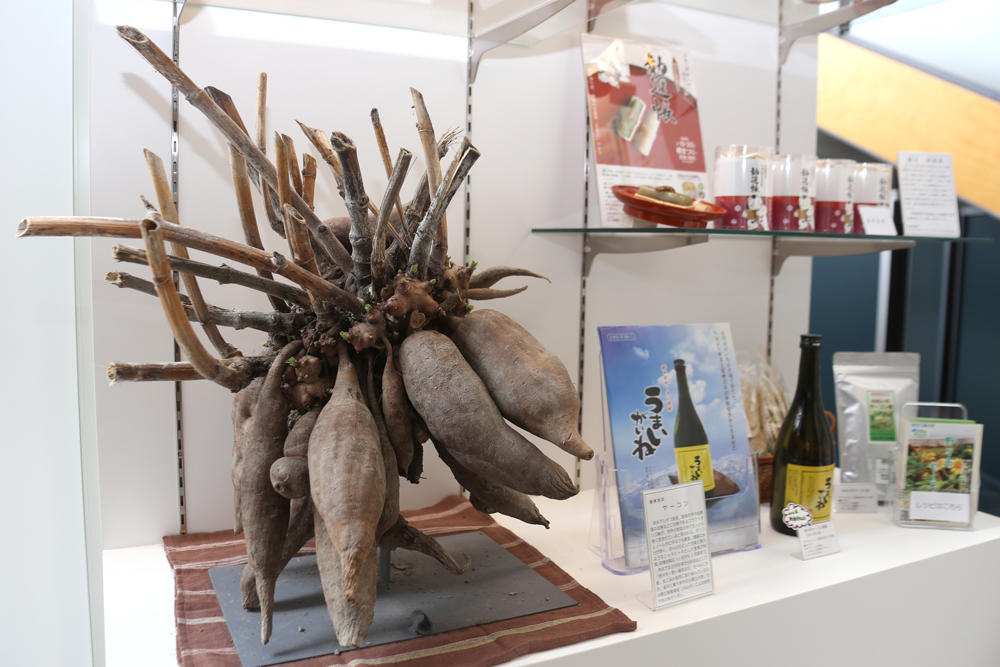 ヤーコン焼酎「うまいがいね」、「ヤーコン煎餅」、「ヤーコン茶」