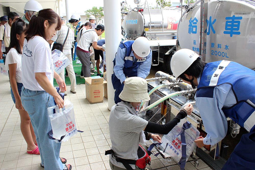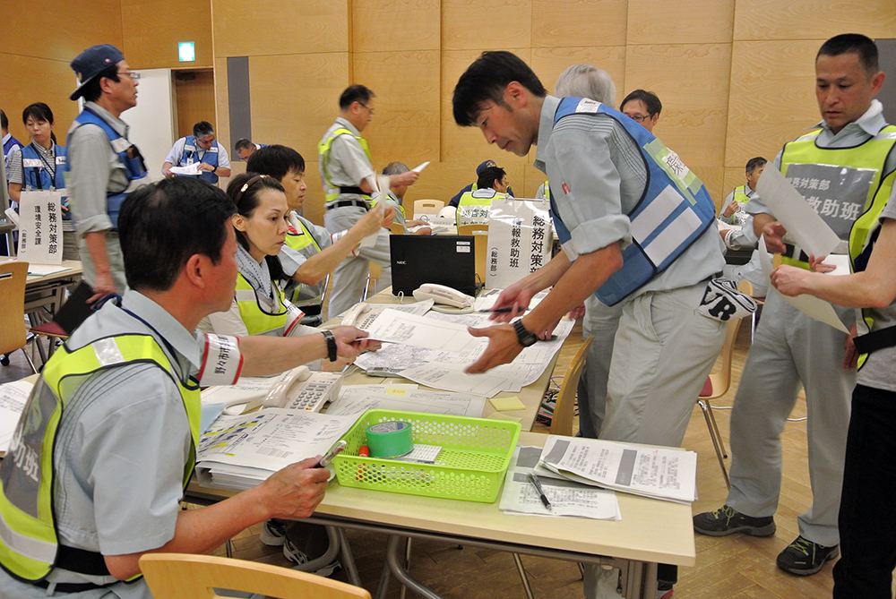 8月20日(日曜日)、全市民(全町内会)を対象とした市総合防災訓練が行われ、関係機関を含め約5千人が参加しました。今年の重点項目は「安否確認」、「避難行動要支援者の支援」、「拠点避難所の運営」の3点でした。